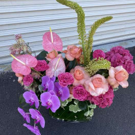 Price: $165.00 Keep Memory Alive Blooms For A Cure Purple Arrangement Product Tags: Same-day Delivery