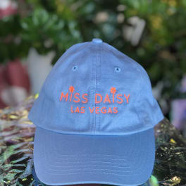 Price: $15.00Miss Daisy Dad Hat in Light Blue & Neon Tangerine